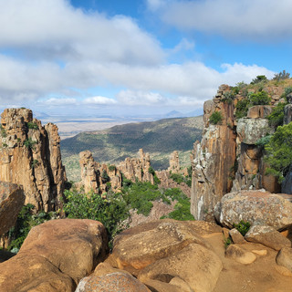 I have been to the Drakensberg, the Pyrenees, fish river canyon, Bourkes luck potholes, the Scottish highlands and the Swiss Alps but this just seemed so different, I was almost flabbergasted. These dolerite stones standing tall for 100s of millions of years and here I was standing alone in awe. I couldn't let this backdrop opportunity go to waste as this was certainly no green screen so I had to do a Katryn video. (click here) I had just taken off my wig and settled to my yoghurt when a family arrived. The older gent was a few minutes behind the younger and he started talking to me. I blinked a few times not understanding a word he said. I was going through my very limited language repertoire, when I realised he was Scottish!!!! He came from Balloch! I blame the altitude.